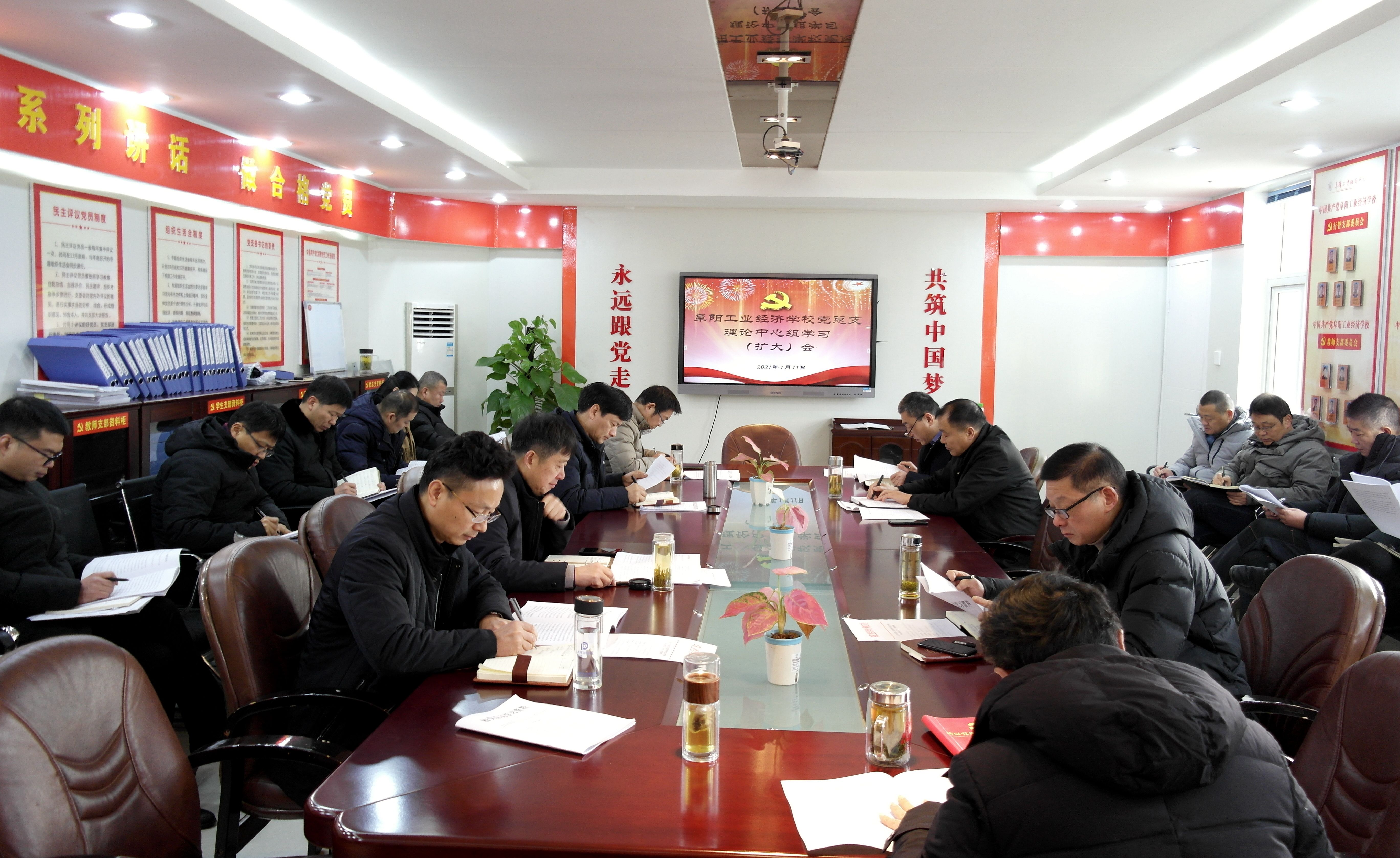 1月11日上午,阜阳工业经济学校召开党总支理论学习中心组2021年第1次学习(扩大)会,校班子成员,各科室负责人参加会议。