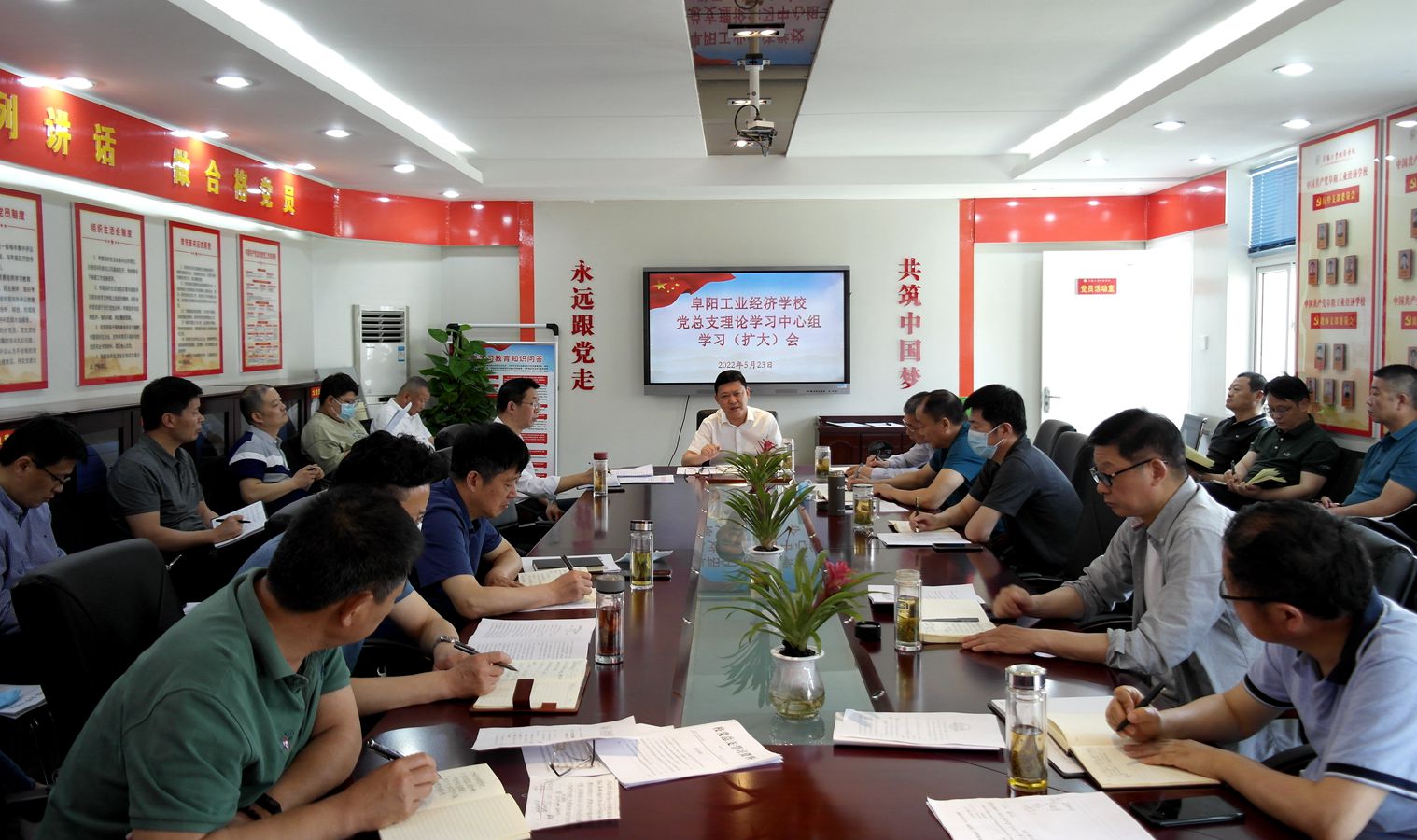 5月23日,阜阳工业经济学校召开党总支理论学习中心组学习(扩大)会,校班子成员、各科室负责人参加会议。会议由校党委书记、校长周波主持。