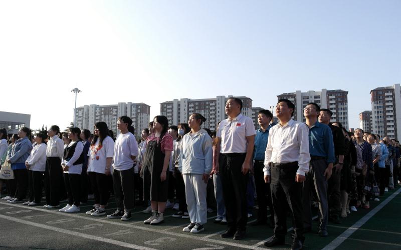 随后全体师生怀着对祖国的热爱,饱含深情同唱国歌,注视国旗冉冉升起。校微宣讲团成员丁清霜作了国旗下的“礼赞新中国 奋进新时代”主体宣讲,并联系学习党史和学习经历,激发同学们要以实现中华民族伟大复兴为已任,增强做中国人的志气、骨气、底气,不辜负党和人民的殷切希望。