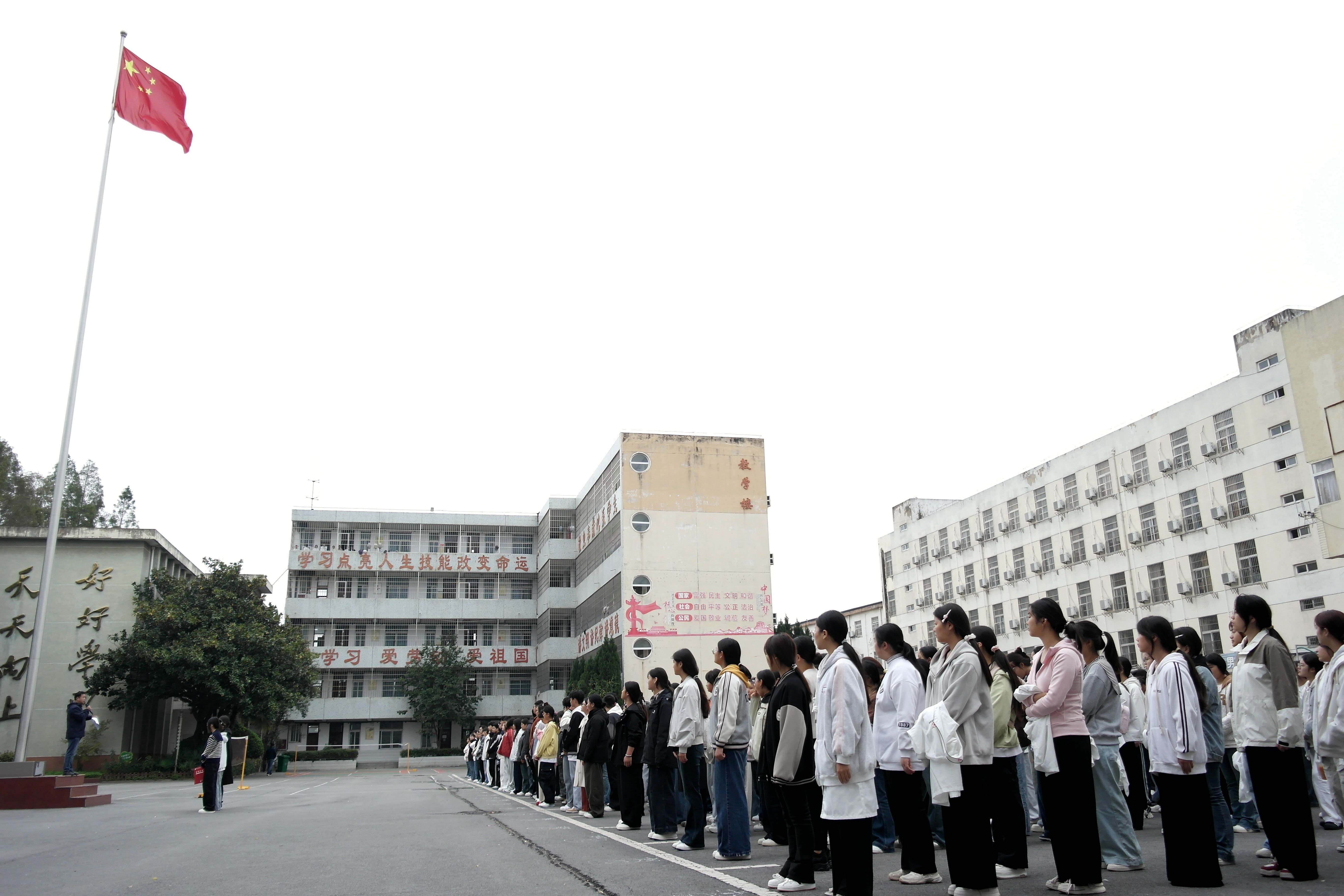 为进一步培育和践行社会主义核心价值观,涵养校园文明新风尚,引导师生将文明理念内化于心、外化于行,营造崇德向善、文明有礼的校园环境,10月13日早晨,阜阳工业经济学校两校区同步举行了“说文明话,做文明事,当文明人”主题升旗仪式,学校领导班子成员及全体师生共同参加了升旗仪式。