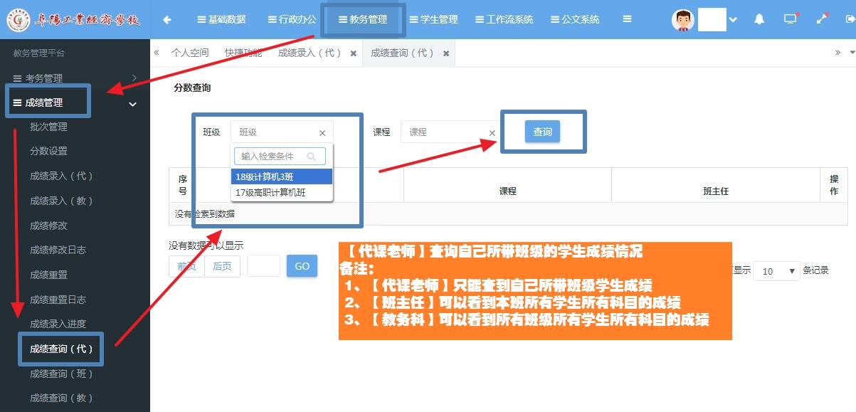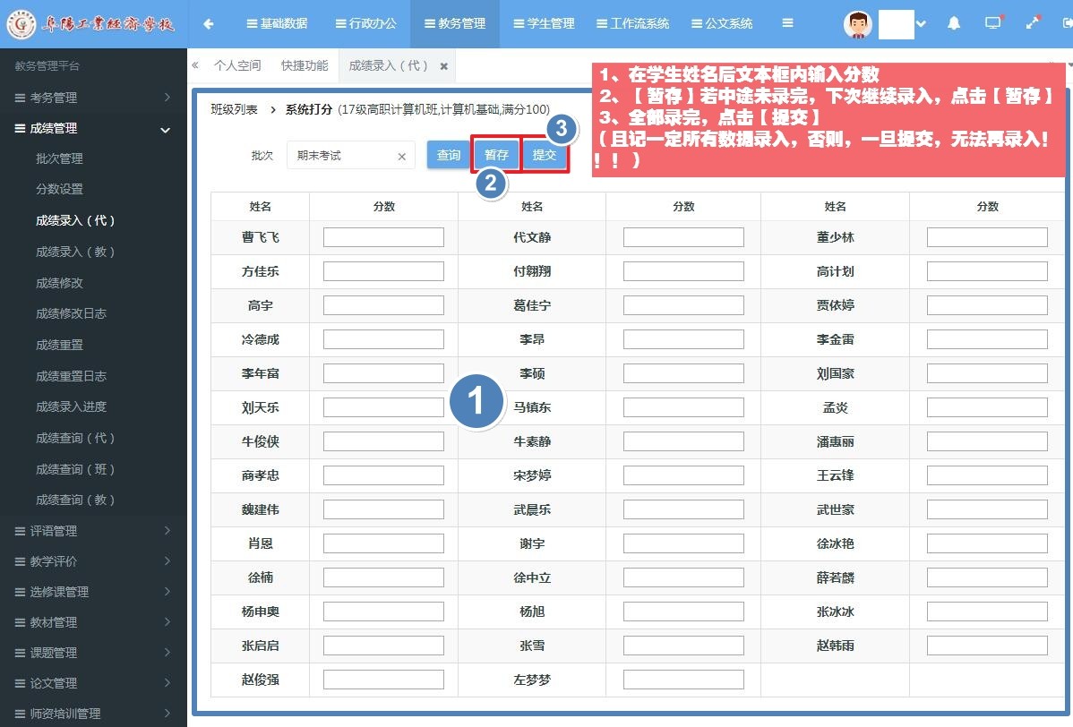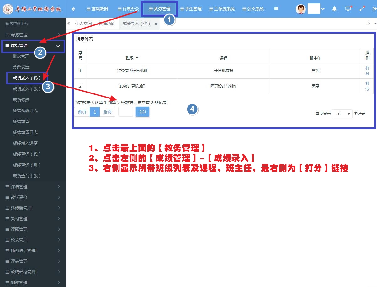 阜阳工业经济学校成绩录入操作方法
