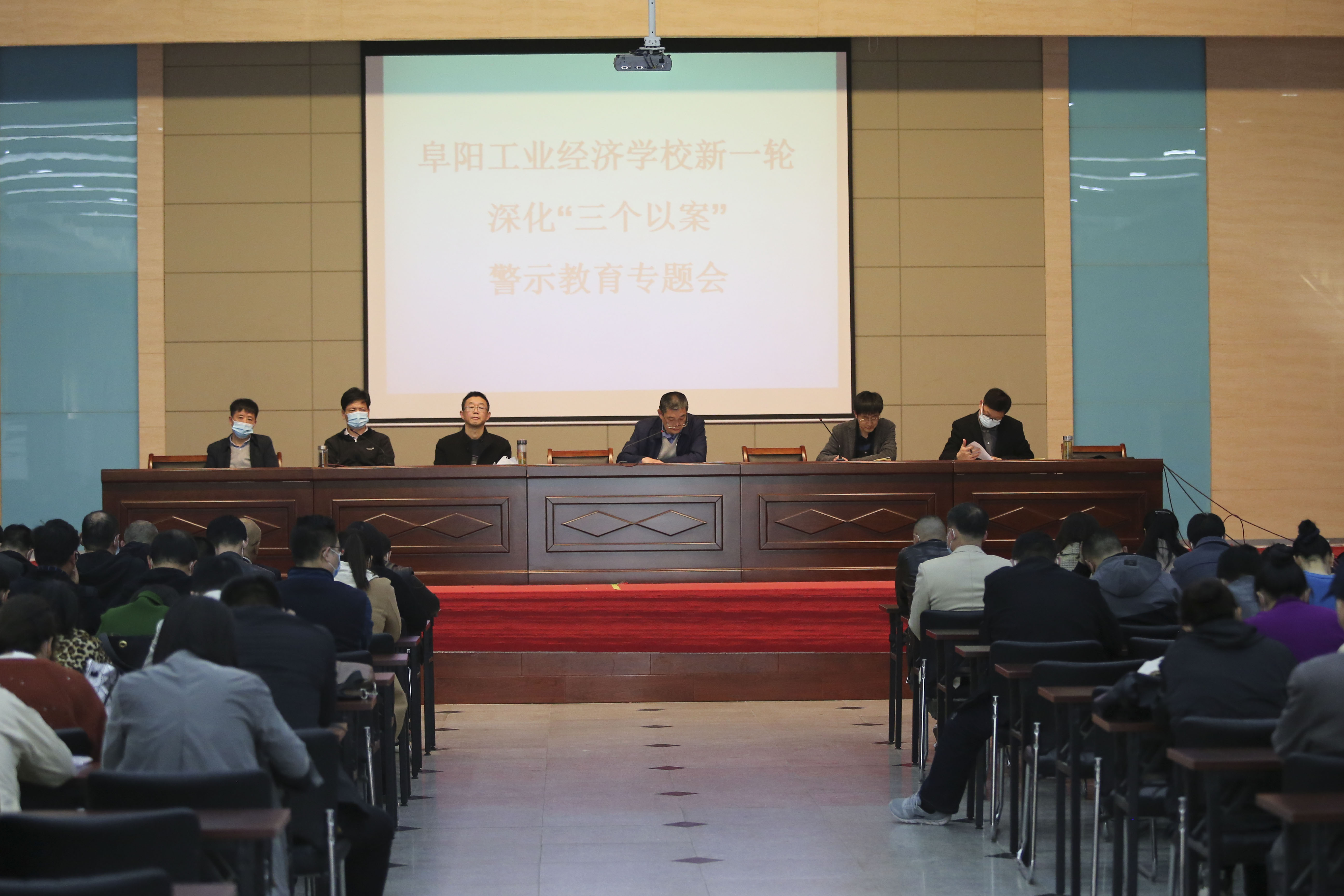 为扎实推动新一轮深化“三个以案”警示教育工作,4月9日下午,我校在报告厅召开集中学习会议,专题学习新一轮深化“三个以案”警示教育相关内容,副校长潘光辉主持会议。全体教职工参加会议。