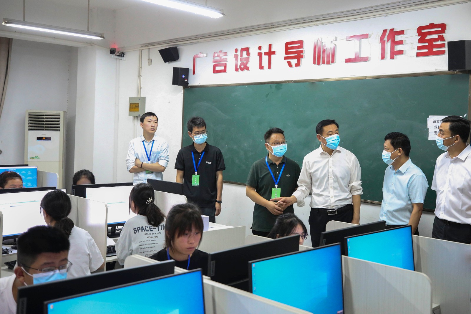 赛中,阜阳市委教育工委书记、市教育局局长刁卫华,阜阳市委教育工委委员尹立新,本次大赛总裁判长戈弋等领导到学校巡视了赛点工作,校党委书记、校长周波等人陪同巡视。赛场秩序很好,裁判员们严守纪律,确保了所有比赛项目的公平公正公开。