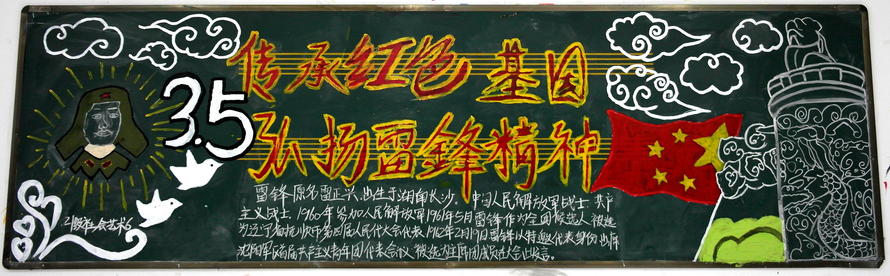 为大力弘扬“奉献、友爱、互助、进步”的志愿服务精神,推进校园文化建设,营造文明、助人为乐的校园氛围,以第59个“学雷锋志愿服务日”为契机,校团委组织开展两校区以“传承红色基因,弘扬雷锋精神”为主题的黑板报(手抄报)活动。