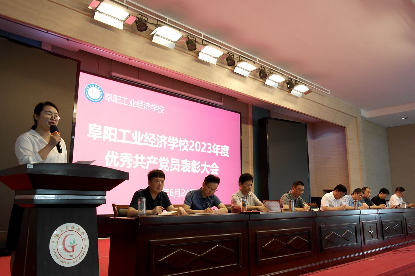 会上宣读了《关于表彰2023年度阜阳工业经济学校优秀共产党员的决定》,优秀党员代表缪侠侠作了发言,校领导为获表彰的优秀党员进行了颁奖。
