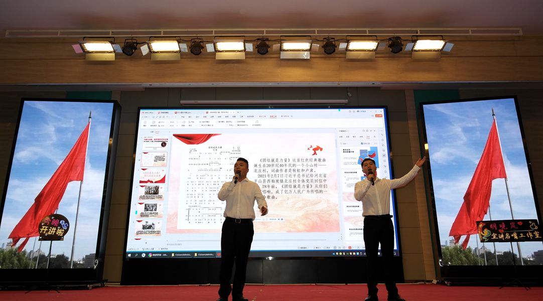 在宣讲过程中,宣讲员和演唱老师们以开天辟地、改天换地、翻天覆地、惊天动地四个篇章,从《团结就是力量》的豪迈激昂到《唱支山歌给党听》深度表达对党的赞颂,从《长江之歌》的自豪之情到《灯火里的中国》的深情眷恋,每一首歌都成为了党史的生动写照。
