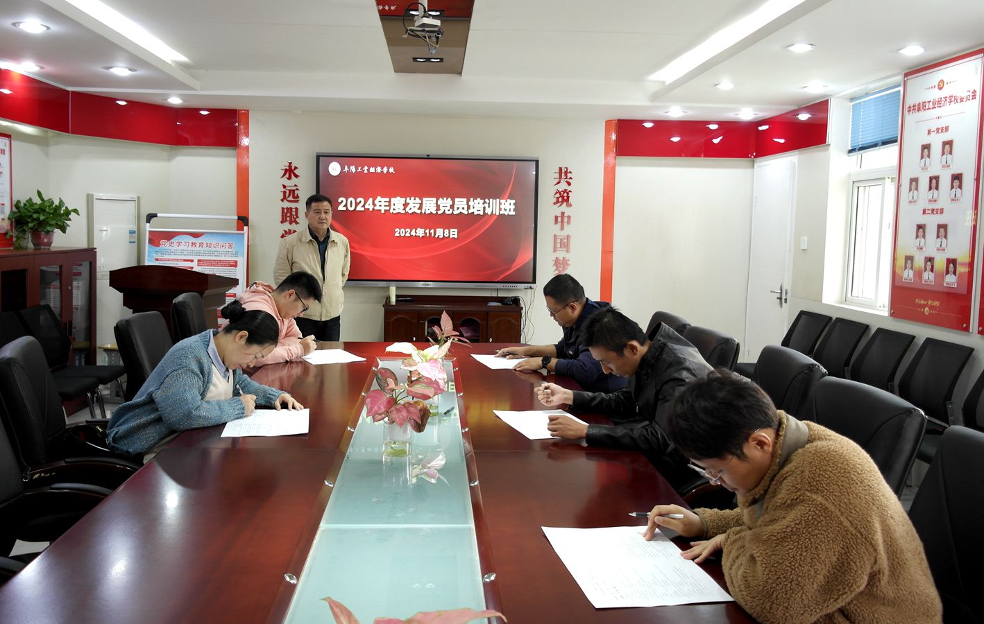 为深入学习贯彻党的二十大精神,做好年度发展党员工作,帮助入党积极分子深入理解党的基本路线、方针、政策和优良传统作风,11月8日,阜阳工业经济学校举办入党积极分子培训班,各党支部入党积极分子参加培训。