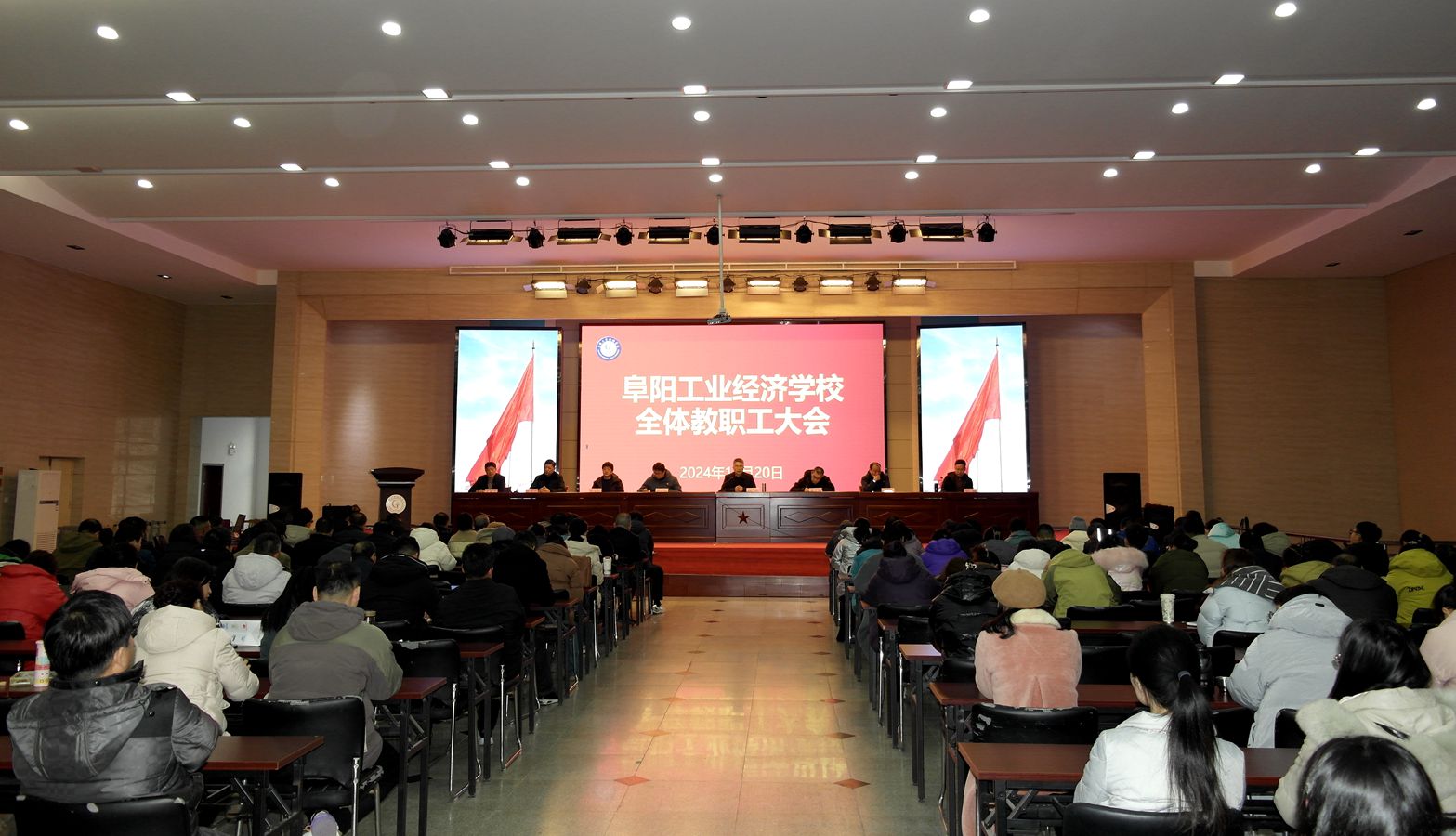 12月20日,阜阳工业经济学校召开全校教职工大会,全体教职员工参加会议。会议由校党委副书记、校长孙杰主持。
