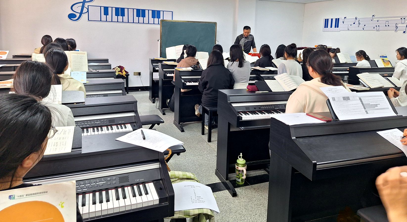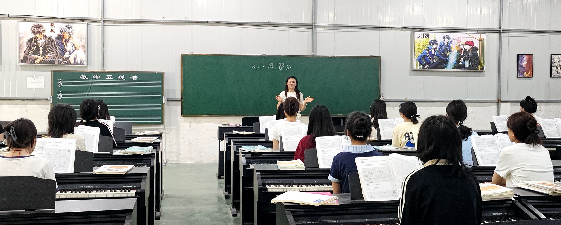 4月16日下午第5节课,袁功齐老师在2023级幼儿保育1班开展《八分音符、大附点》公开课示范教学。在课堂上,袁老师通过《瑶族舞曲》等民族音乐案例,引导学生绘制五声音阶旋律线,感悟劳动者们自强不息的精神,将乐理知识与文化自信紧密结合,让学生在音乐学习中感受文化内涵,强化国家文化安全意识。