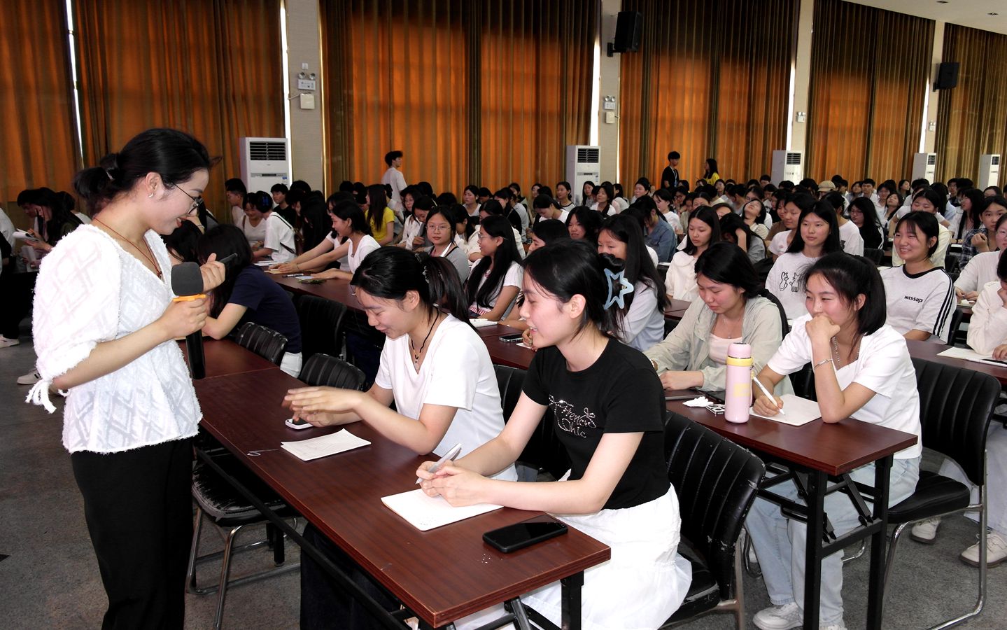 针对学生在学习和生活中可能遇到的压力与困扰,占老师详细介绍了多种实用的心理调适方法,如情绪管理技巧(合理宣泄、积极暗示、深呼吸放松等)、时间管理策略、人际交往的原则与方法等。同时,通过现场示范和互动,引导学生亲身体验这些方法,确保学生能够将其运用到实际生活中。