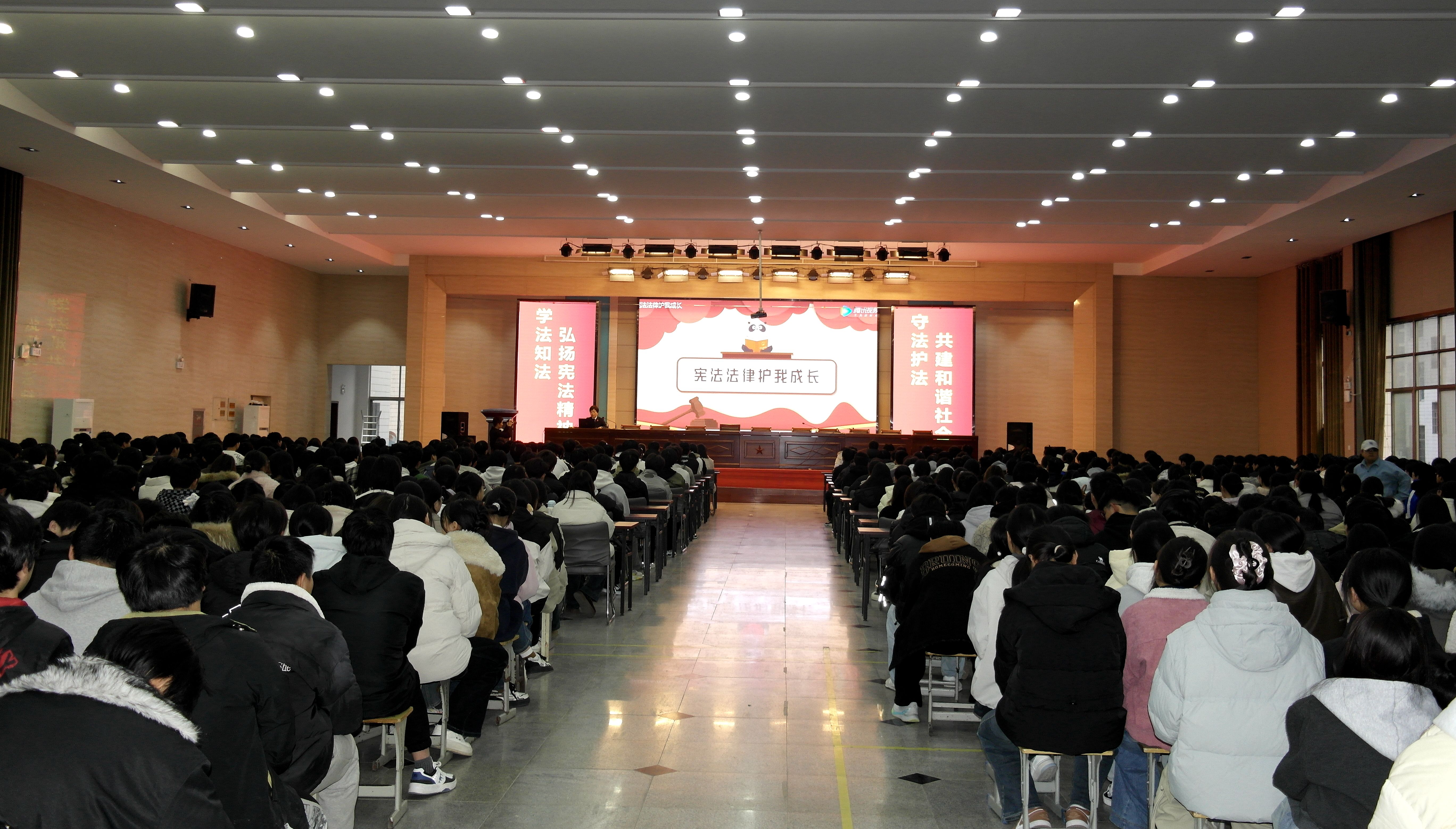 今年12月4日是第十二个国家宪法日。为进一步强化学生法治观念,提升自我保护能力,护航未成年人健康成长,12月1日,阜阳市人民检察院党组成员、副检察长吴静应邀到校,在学校二楼报告厅,面向1000余名在校学生开展题为“筑牢青春防线 走好精彩人生路”的专题法治报告会。​