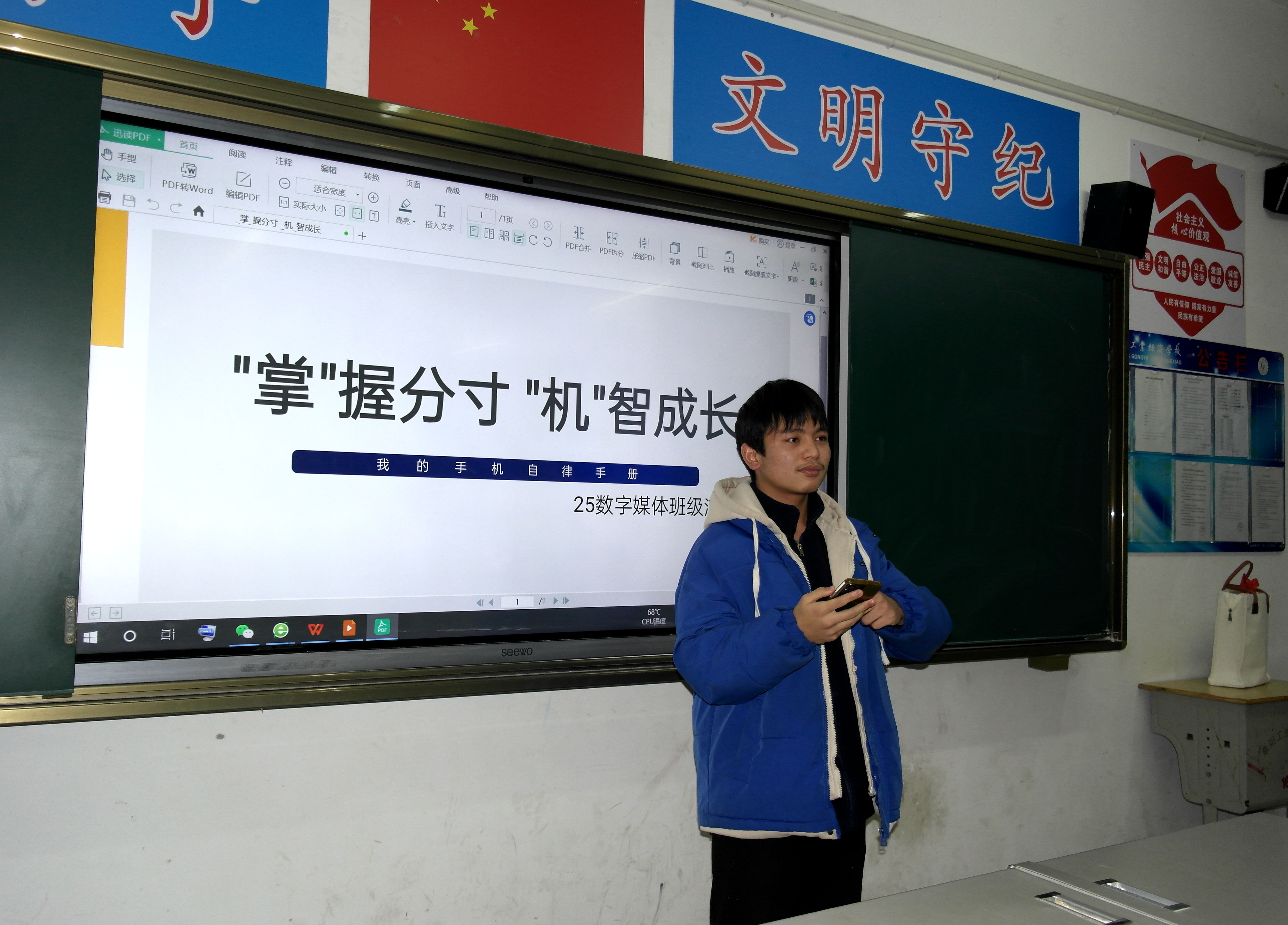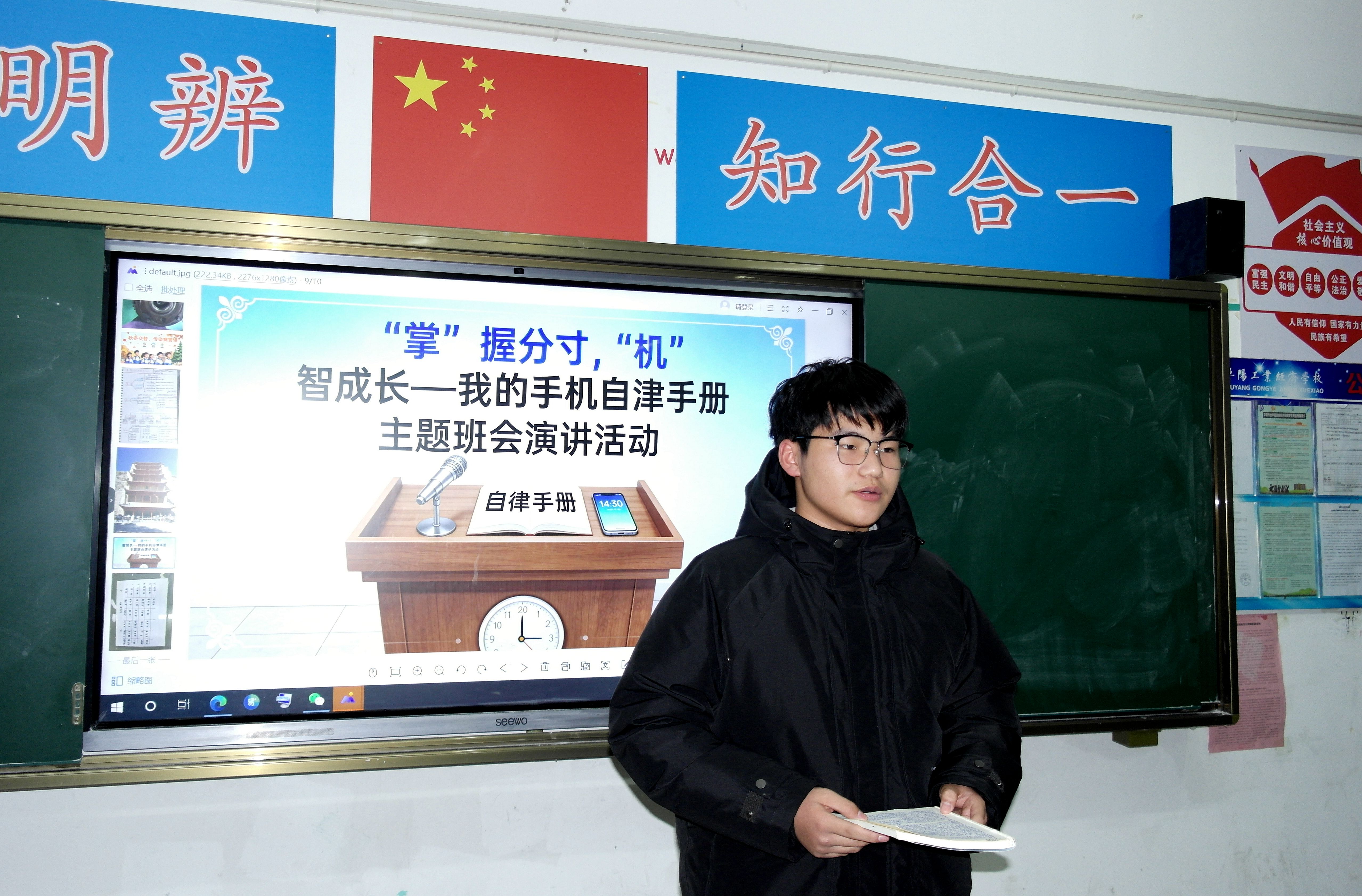 为引导中职生树立科学的手机使用观念,锤炼自律品格与时间管理能力,近日,阜阳工业经济学校东、南两校区一、二年级开展“‘掌’握分寸‘机’智成长——我的手机自律手册”主题班会活动。各班级以多样化形式展开深度互动,让“合理用机、自律成长”的理念深入人心。​