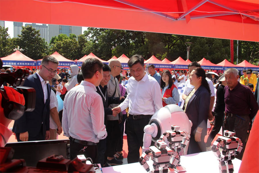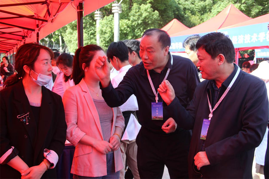 市领导巡视巡展,我校工作人员在认真讲解介绍