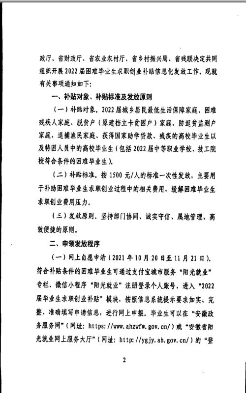 关于做好2022届困难毕业生求职创业补贴信息化发放工作的通知