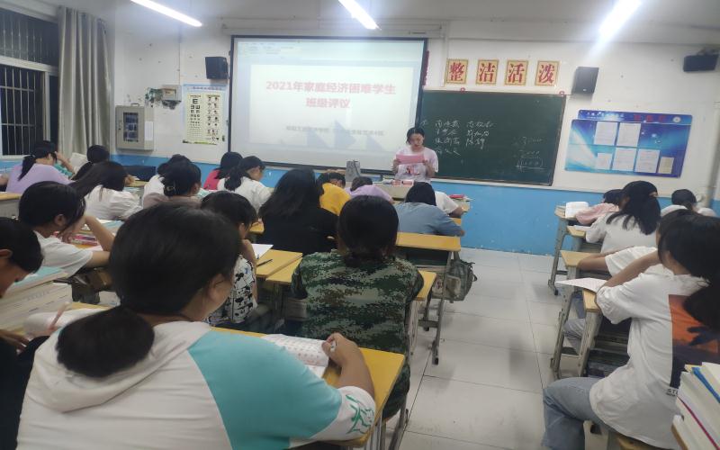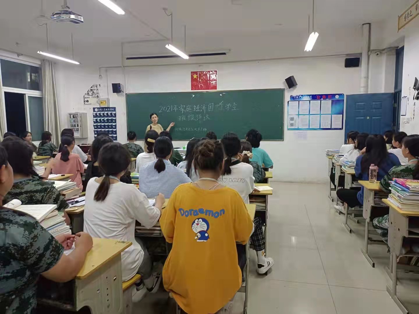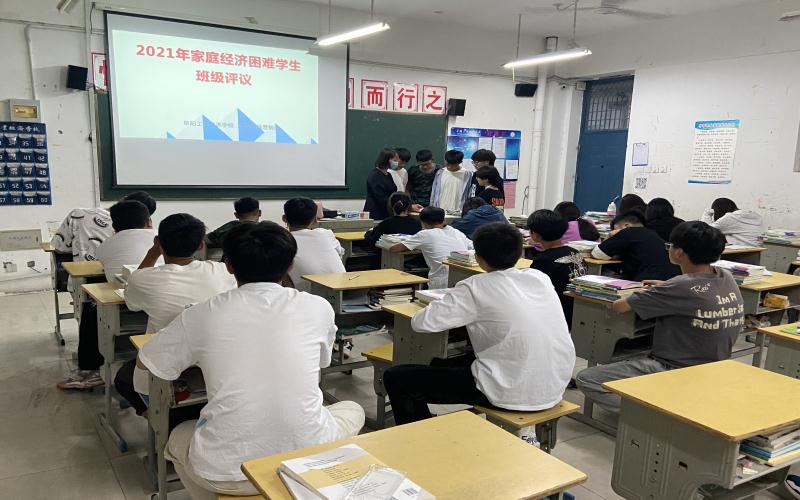 阜阳工业经济学校2021年秋季学期家庭经济困难学生班级评审认定工作正式启动。各班级利用晚自习时间召开国家助学金家庭经济困难学生评审认定会,班主任系统地讲解了国家助学金的认定办法、申请条件、标准、评审、申报流程及相关表格填写注意事项。