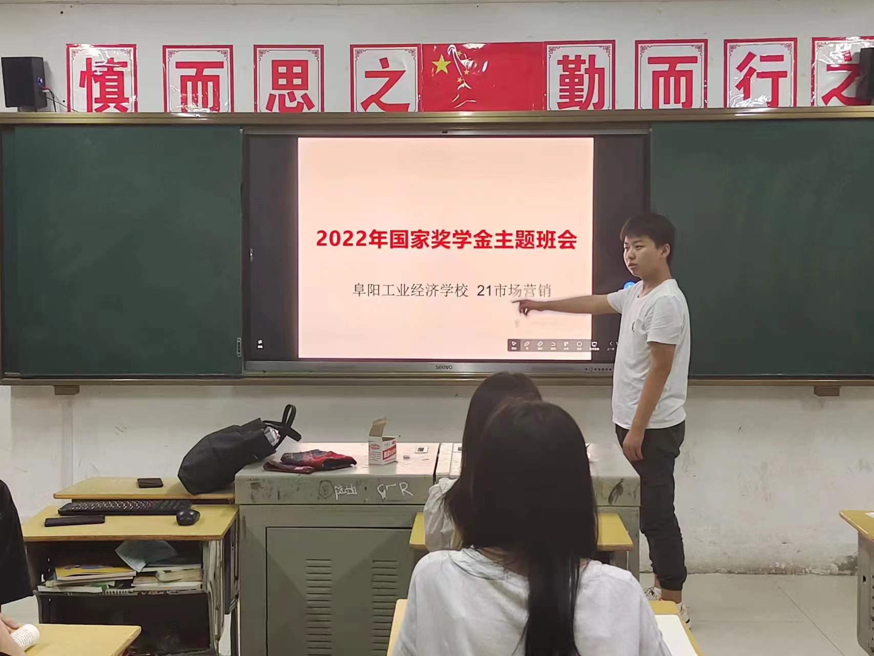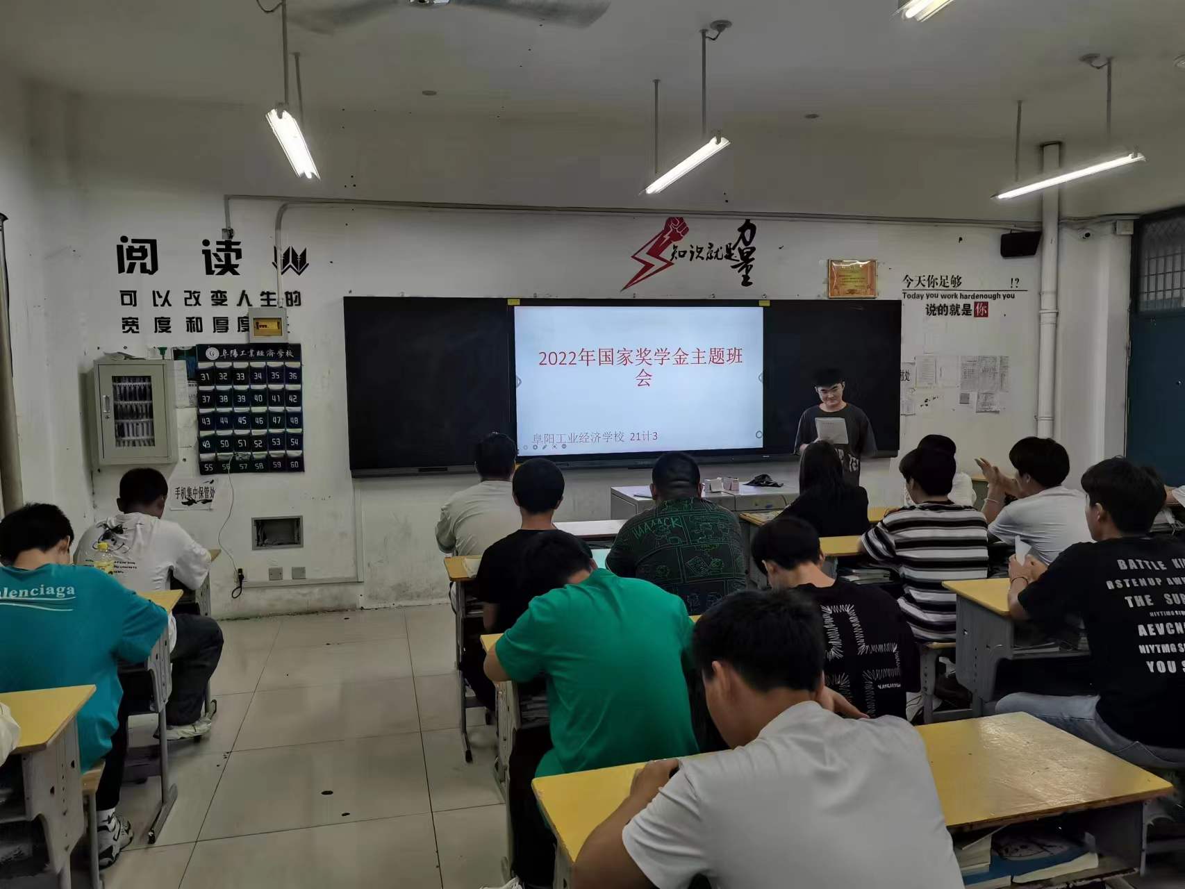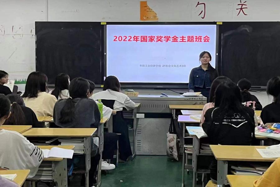 阜阳工业经济学校各班级按校资助办要求利用晚自习时间召开2022年国家奖学金宣传主题班会。班主任带领学生学习了国家奖学金的申请条件、评选标准、评审制度、申报流程及填表注意事项。并鼓励符合条件的学生踊跃报名,尽快办理奖学金相关事宜。