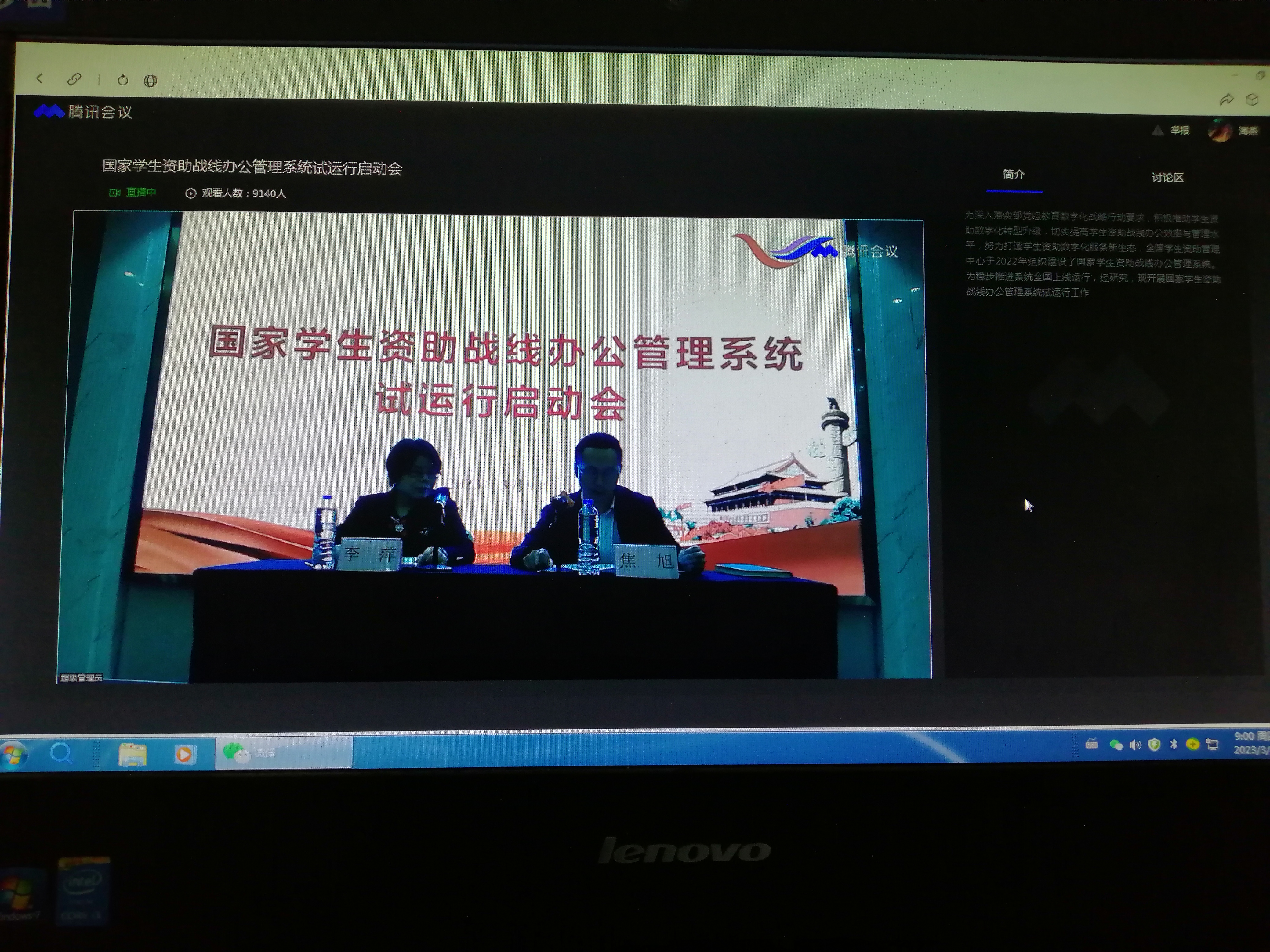 阜阳工业经济学校资助办成员参加网上学习国家学生资助战线办公管理系统试运行启动会