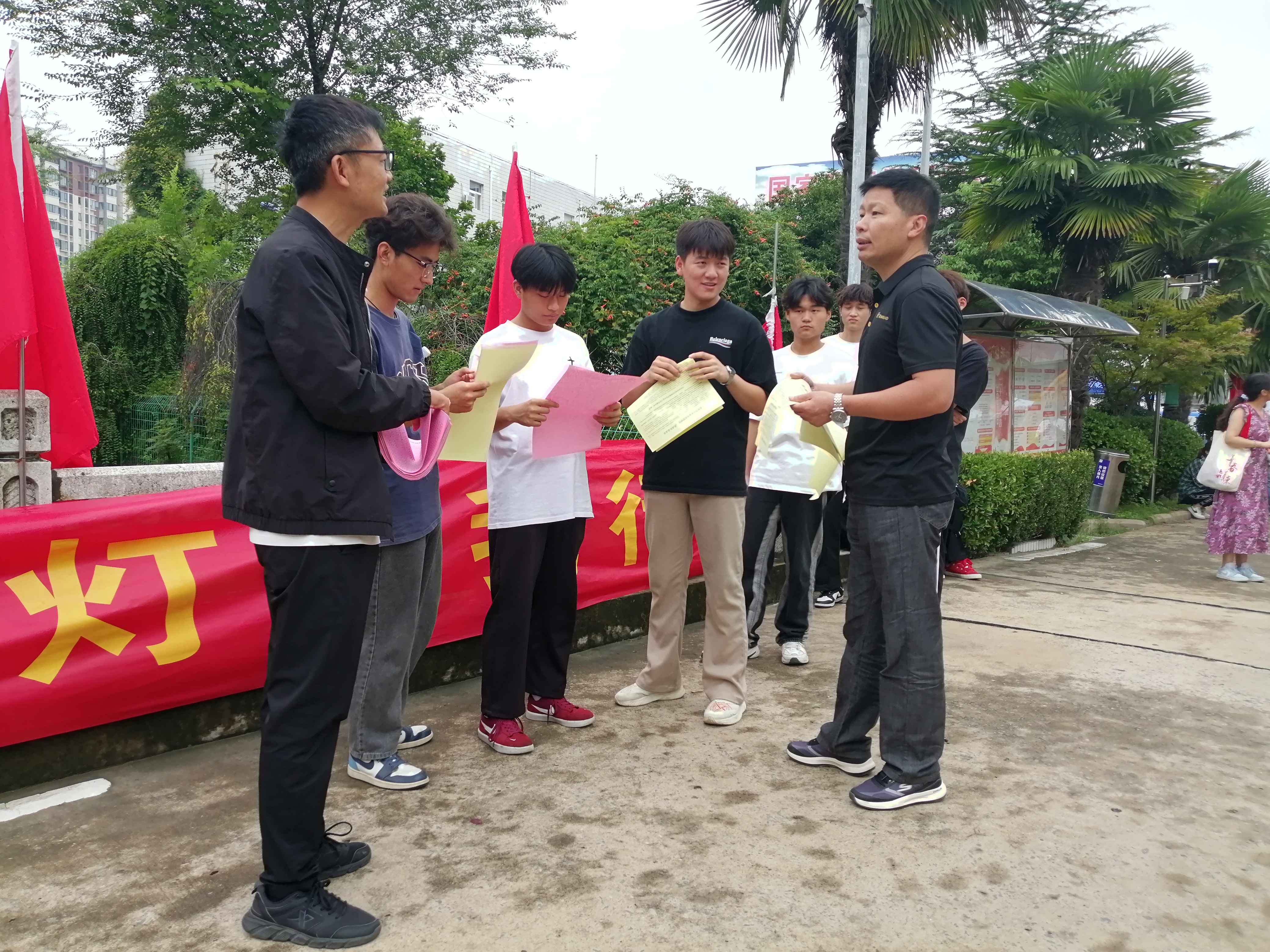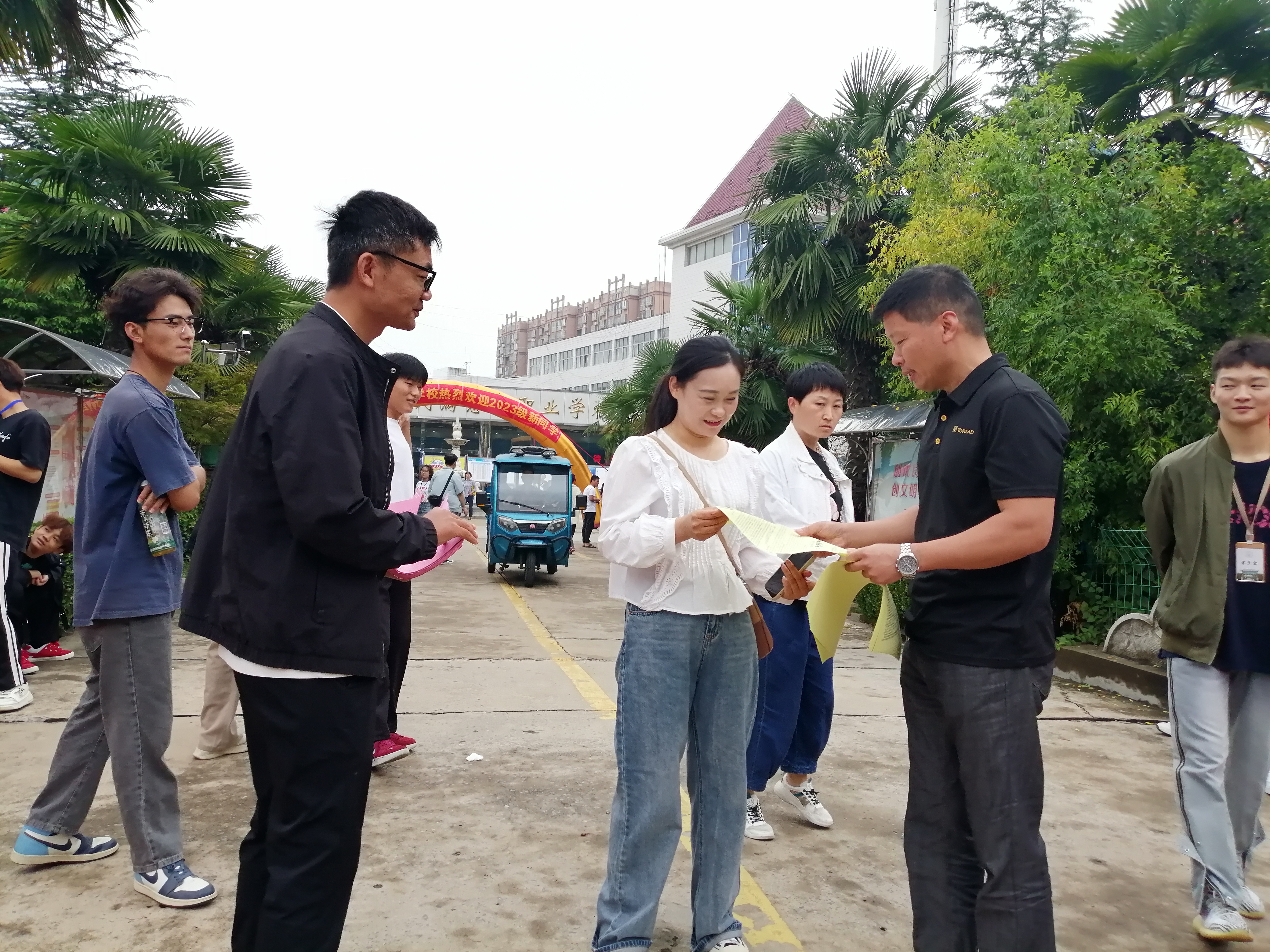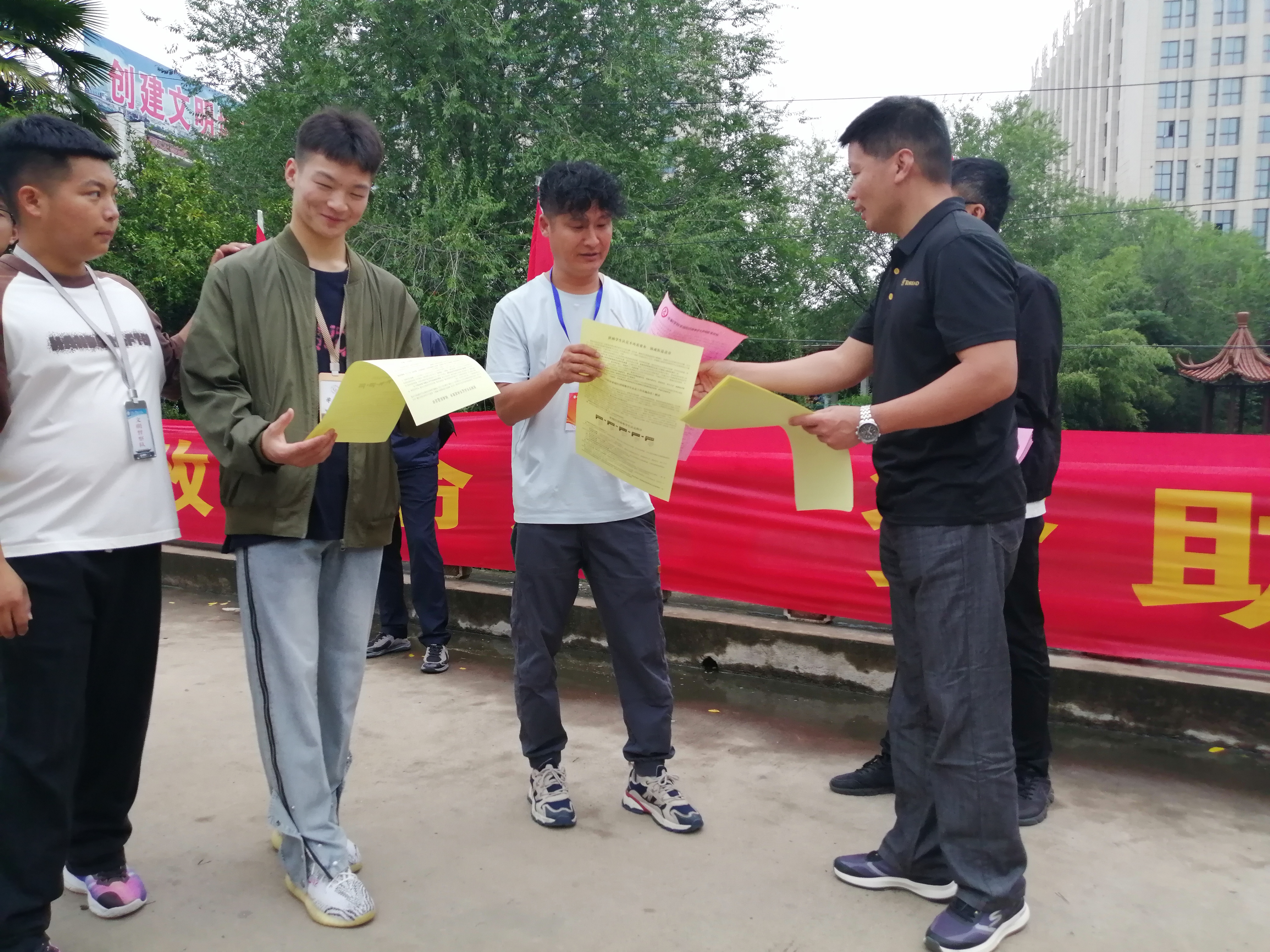 资助政策宣传是阜阳工业经济学校学生资助管理工作的重要组成部分。我校资助办工作人员利用8月28日23级新生报到的有利时机,在校门口现场为新生及家长解读国家资助政策,发放《中职学校家庭经济困难学生资助政策须知》、《家庭经济困难学生认定程序》等相关资助政策宣传资料。在校园多处悬挂资助宣传标语。并通过观察了解掌握新生家庭经济状况,为今后做好贫困新生的资助工作打牢基础。