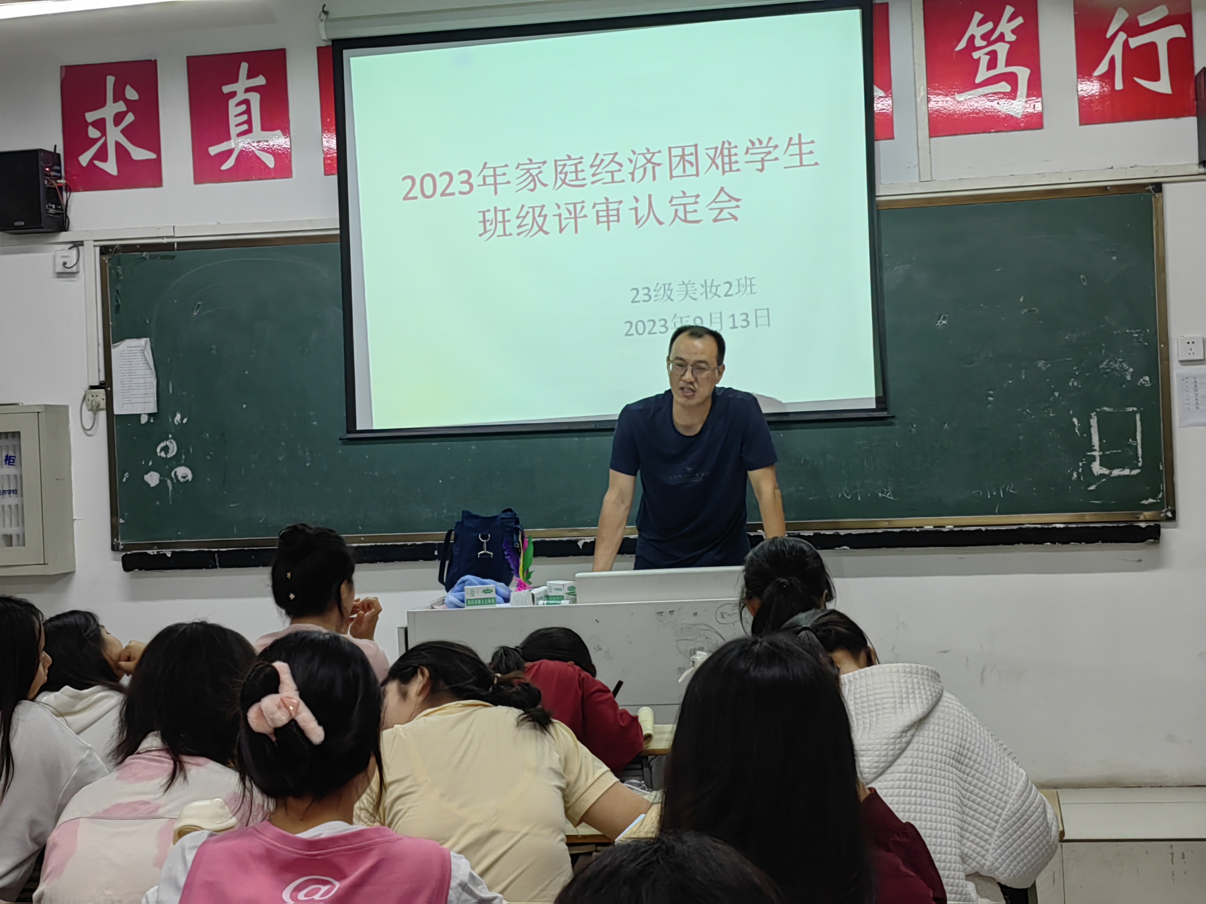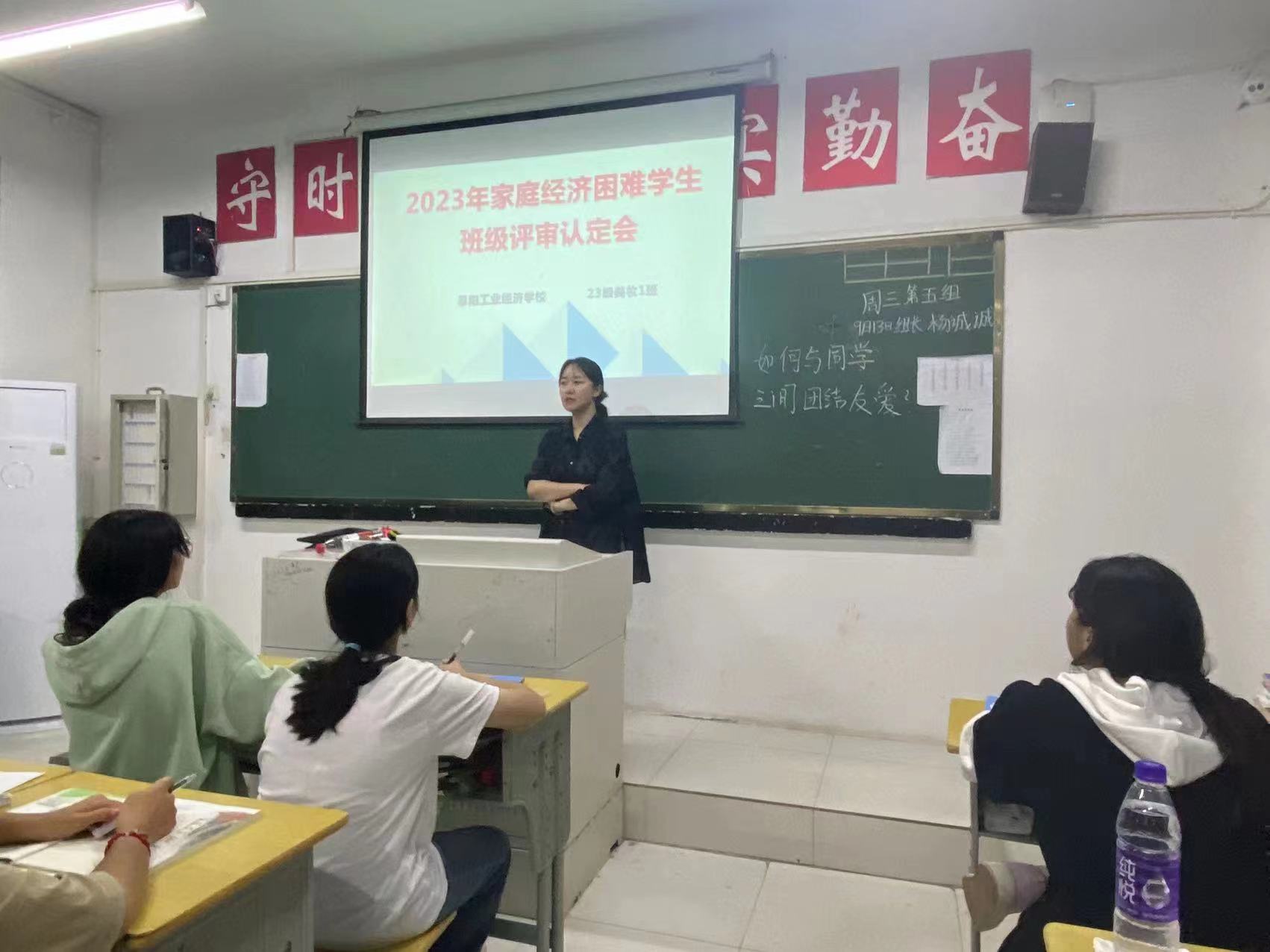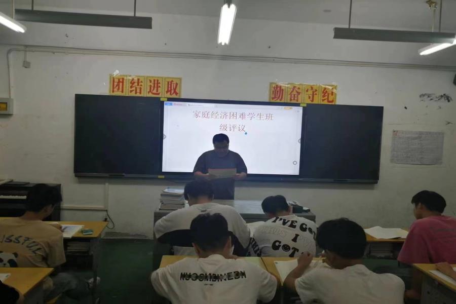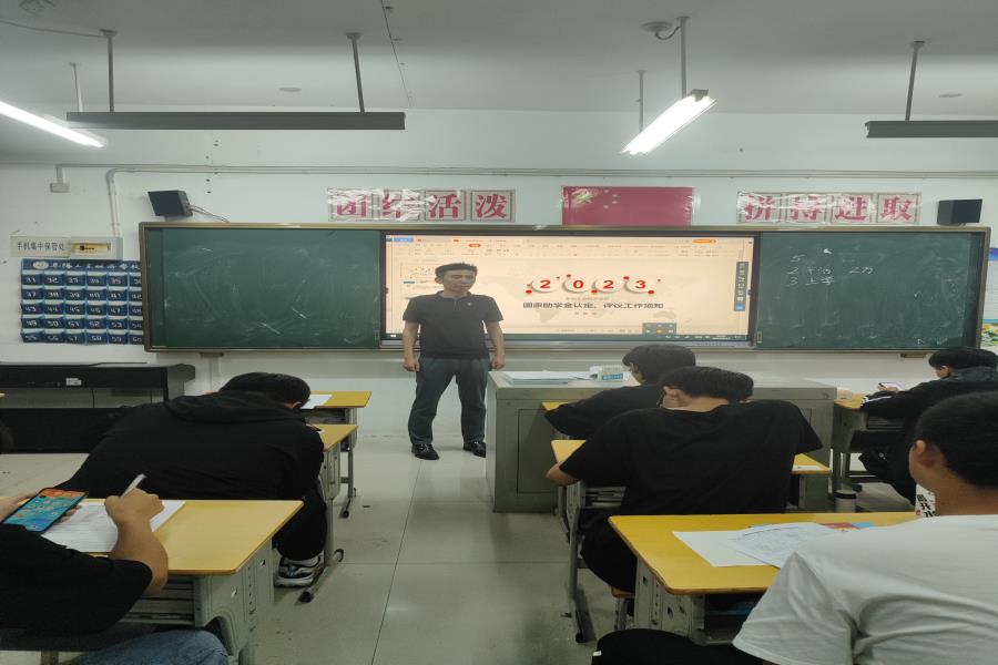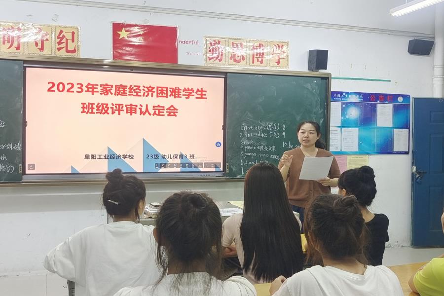 阜阳工业经济学校2023年秋季学期家庭经济困难学生班级评审认定工作正式启动。各班级利用晚自习时间召开国家助学金家庭经济困难学生评审认定会,班主任系统地讲解了国家助学金的认定办法、申请条件、标准、评审、申报流程及相关表格填写注意事项。