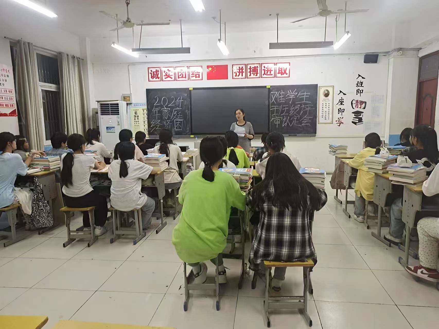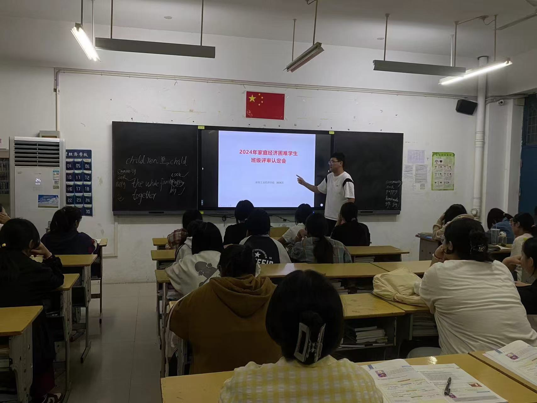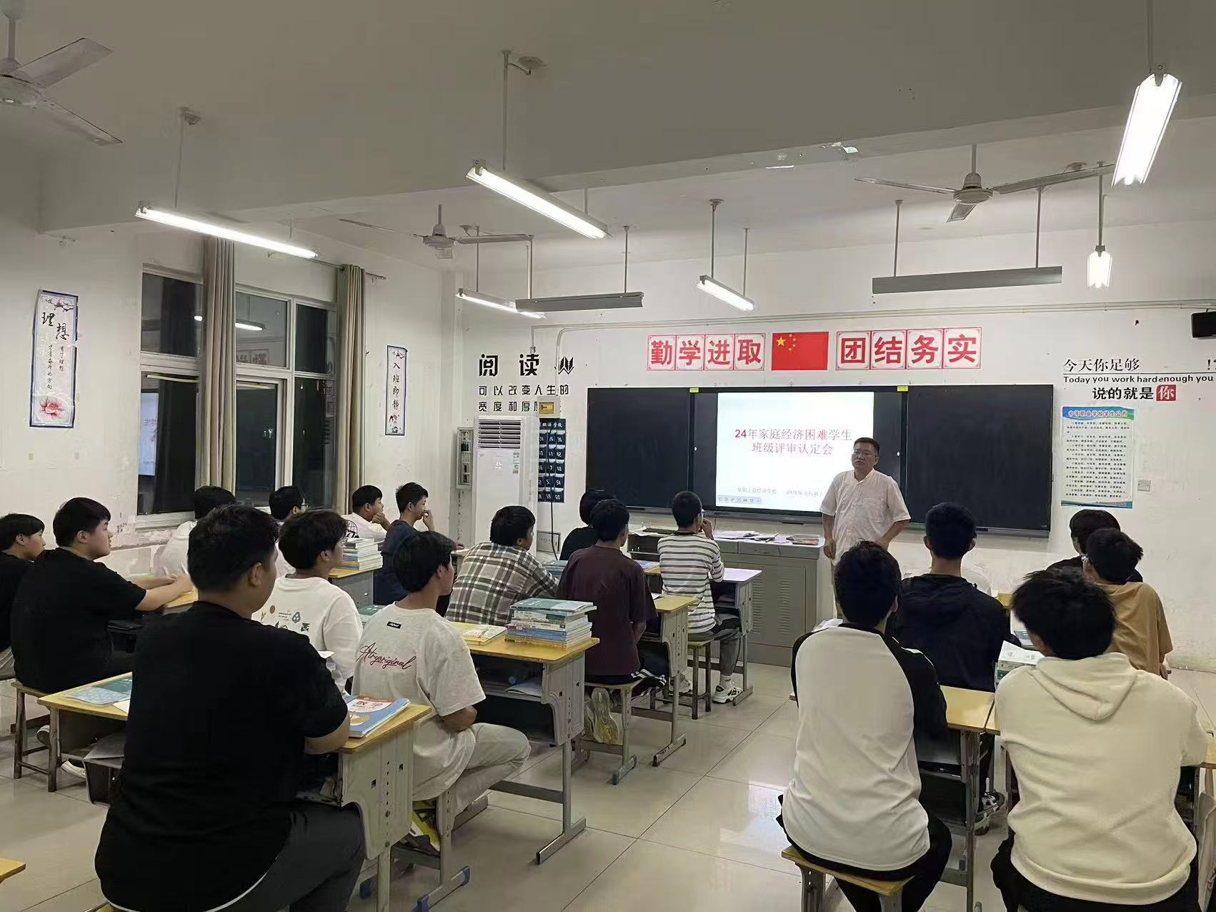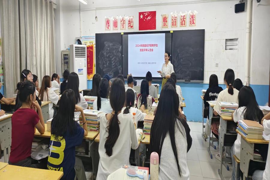 阜阳工业经济学校2024年秋季学期家庭经济困难学生班级评审认定工作正式启动。各班级利用晚自习时间召开国家助学金家庭经济困难学生评审认定会,班主任系统地讲解了国家助学金的认定办法、申请条件、标准、评审、申报流程及相关表格填写注意事项。