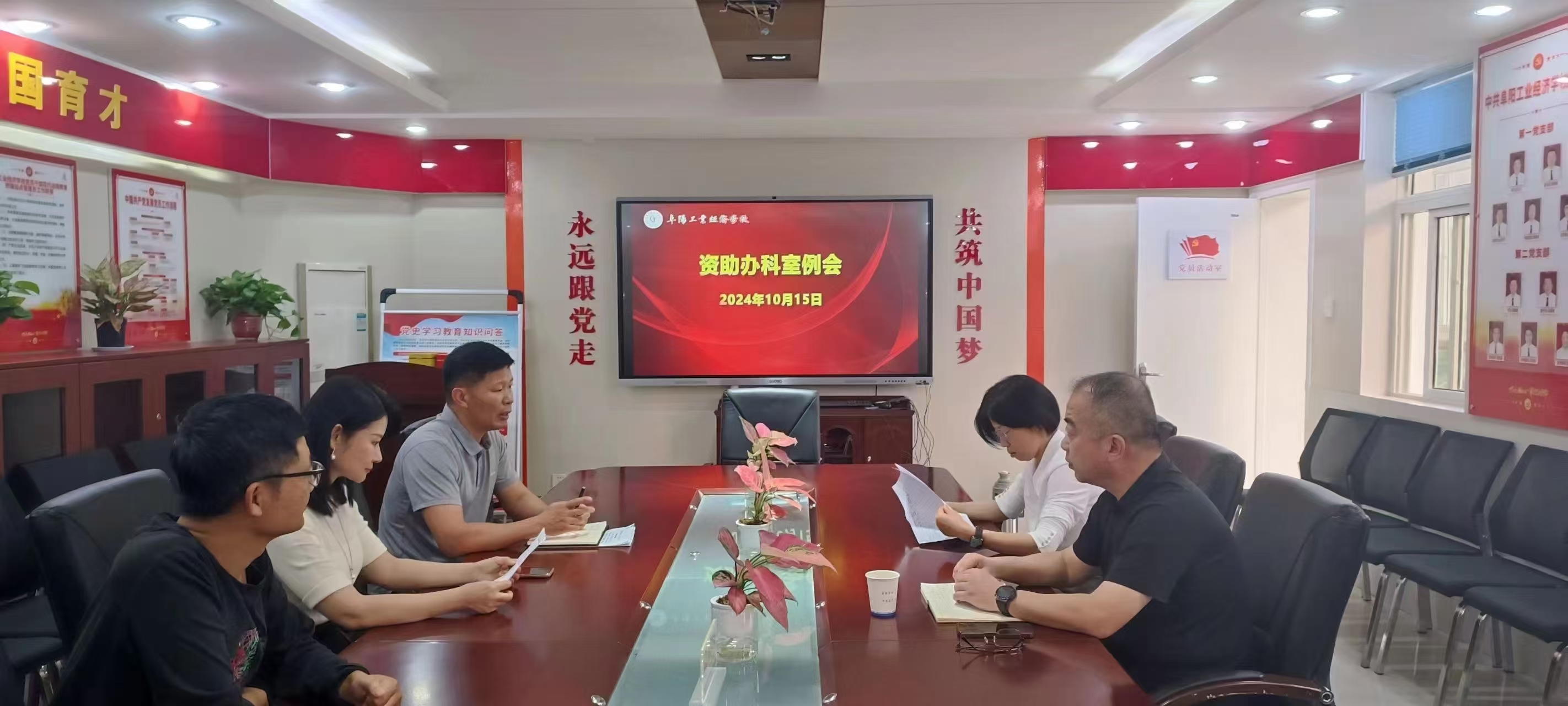 阜阳工业经济学校资助办于10月15日在校四楼会议室召开科室业务学习及工作例会,会议由姜亮主任主持。