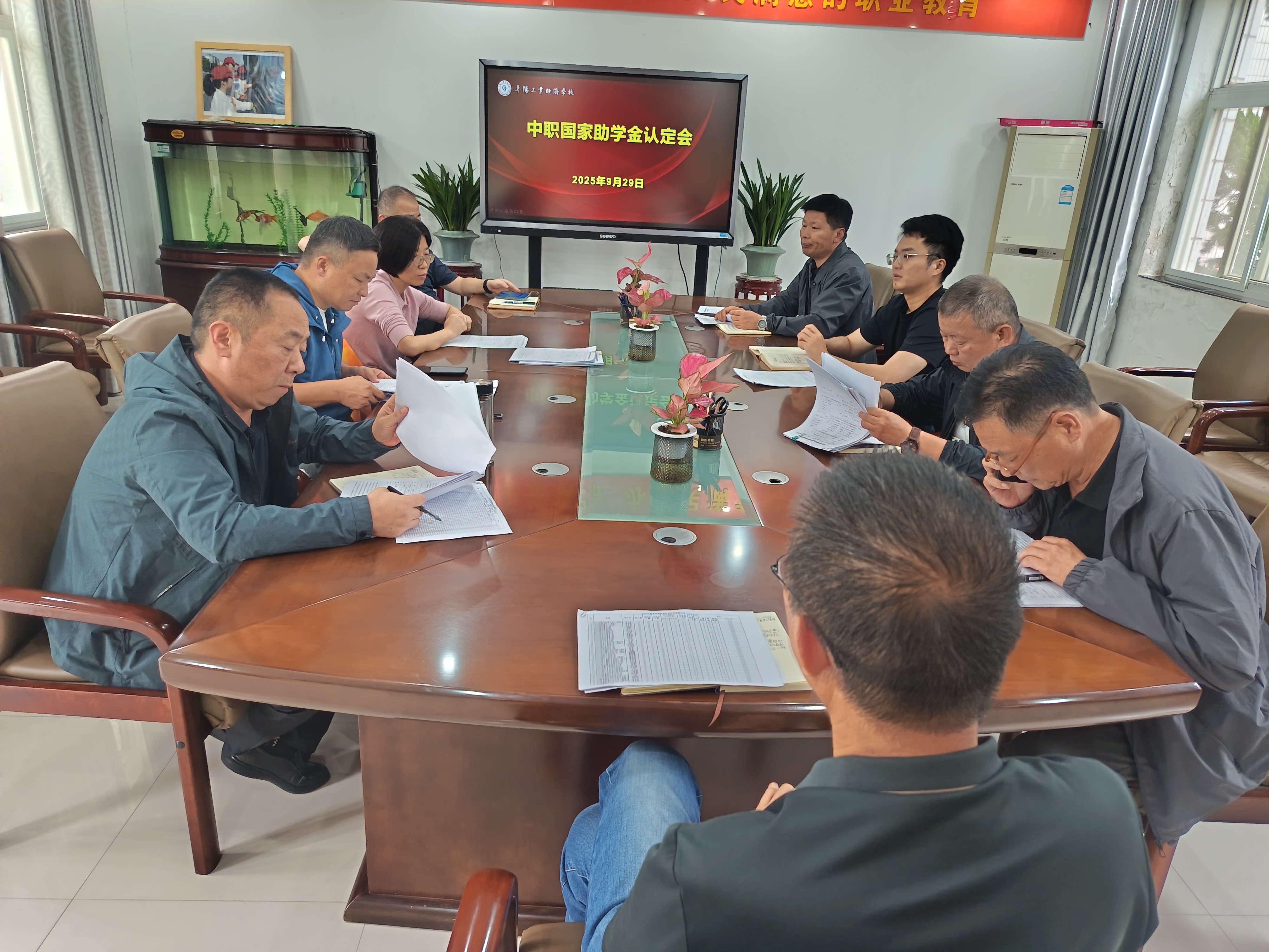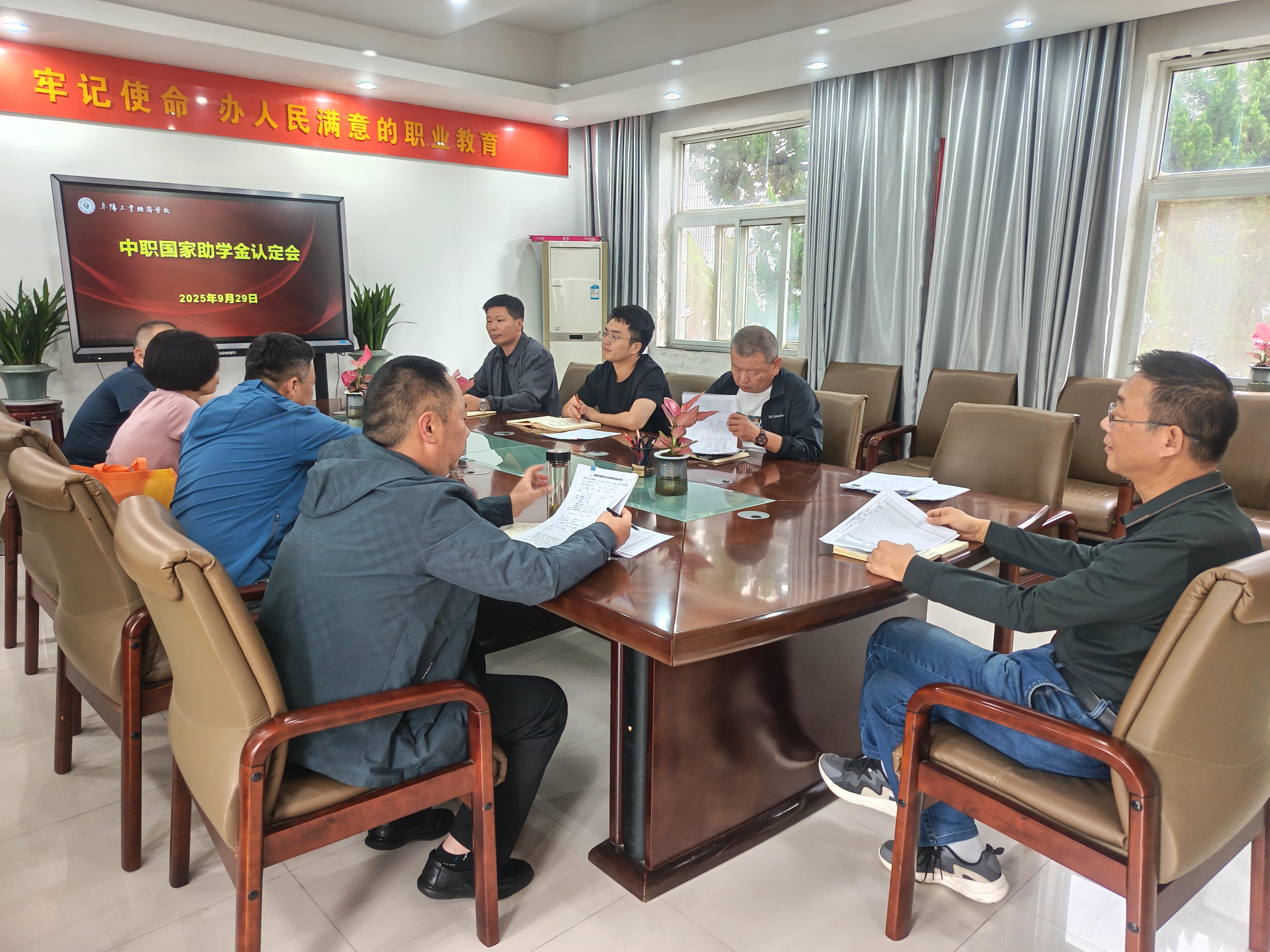 为了做好我校贫困生的资助工作,确保资助工作公开、公平、公正。阜阳工业经济学校按照皖财教[2024]1252号、阜财教[2025]42号文件要求和相关部署,结合我校实际情况,于2025929日下午召开了2025年秋季学期中职国家助学金认定会。